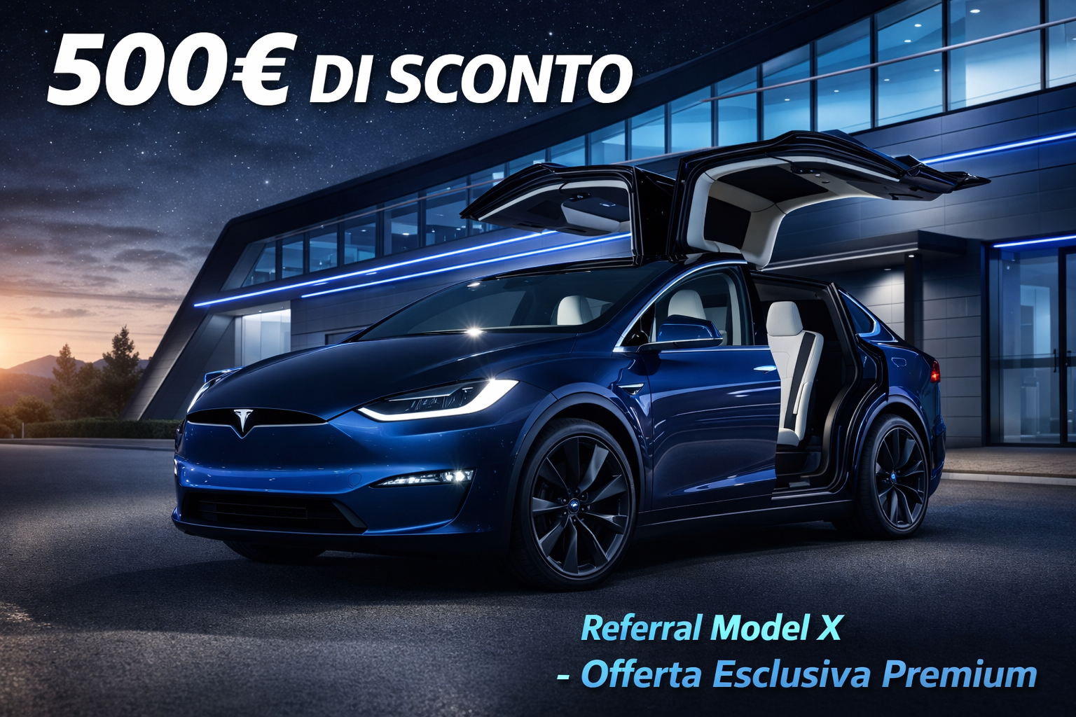 Non perdere l’opportunità di risparmiare 500€ sull’acquisto della tua Tesla Model S. Contattaci oggi per ricevere il codice referral esclusivo!